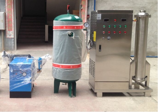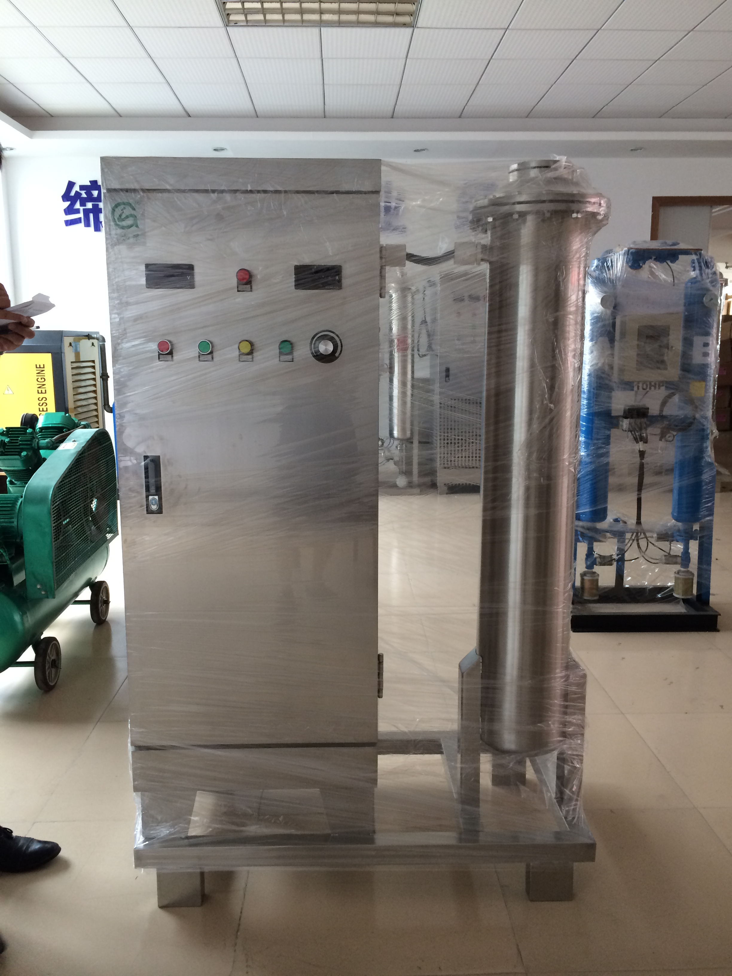 本系統配套產(chǎn)量200g/h的臭氧發(fā)生器1臺,采用2.2KW無(wú)油壓縮機,7.5P冷干機,兩組過(guò)濾器,0.3m3儲氣罐等組成。