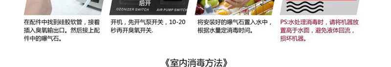4:禁止將臭氧機放在消毒區內工作,為了工作的安全,設備應有單獨工作區,再用硅膠管將臭氧氣體輸送到消毒或化學(xué)反應區。